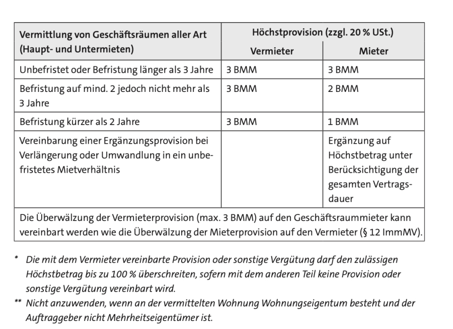 Eine Provision für besondere Abgeltungen in der Höhe von bis zu 5 % kann zusätzlich mit dem Vormieter oder Vermieter vereinbart werden